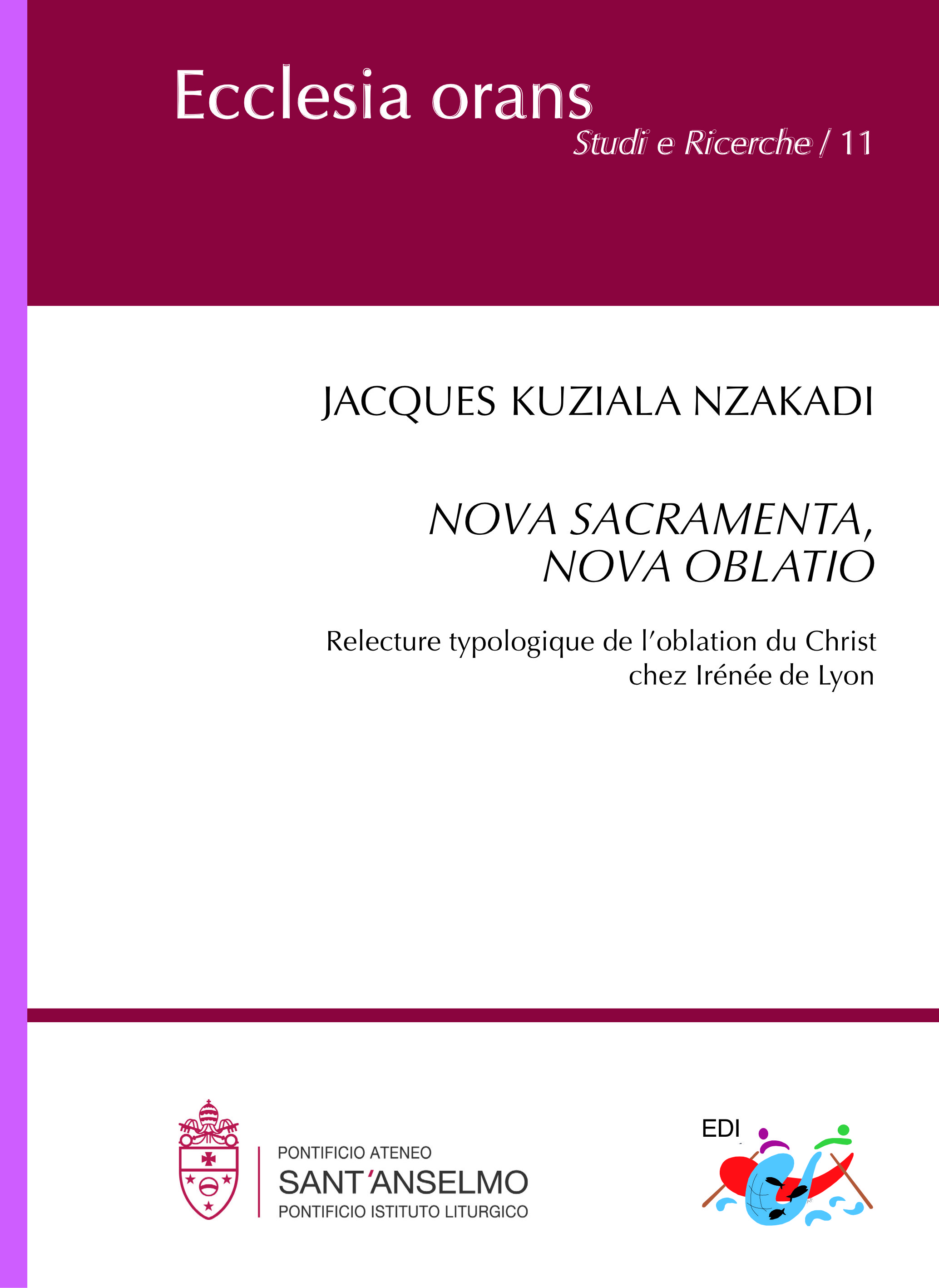 È stato pubblicato il volume Nova sacramenta, nova oblatio. Relecture typologique de l’oblation du Christ chez Irénée de Lyon di Jacques Kuziala Nzakadi, per la collana Ecclesia orans. Studi e Ricerche del Pontificio Istituto Liturgico.