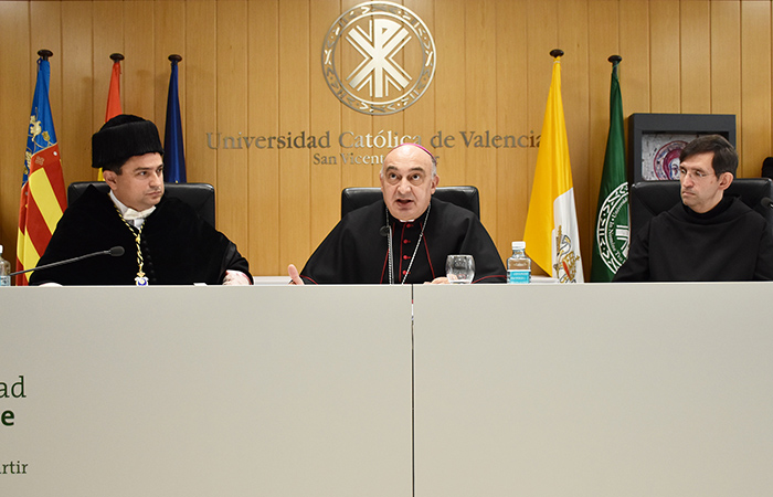 Valencia, 11 gennaio 2023 – Nell’ambito del convegno promosso dall’Università Cattolica di Valencia, il Prof. Jordi-Agustí Piqué i Collado OSB, ordinario e Preside del Pontificio Istituto Liturgico di Sant’Anselmo a Roma, ha presentato la relazione «Visibilis et audibilis forma: bases per un ensayo de teología (litúrgica) “in musica” a partir de la Suma Teológica de Tomás de Aquino»